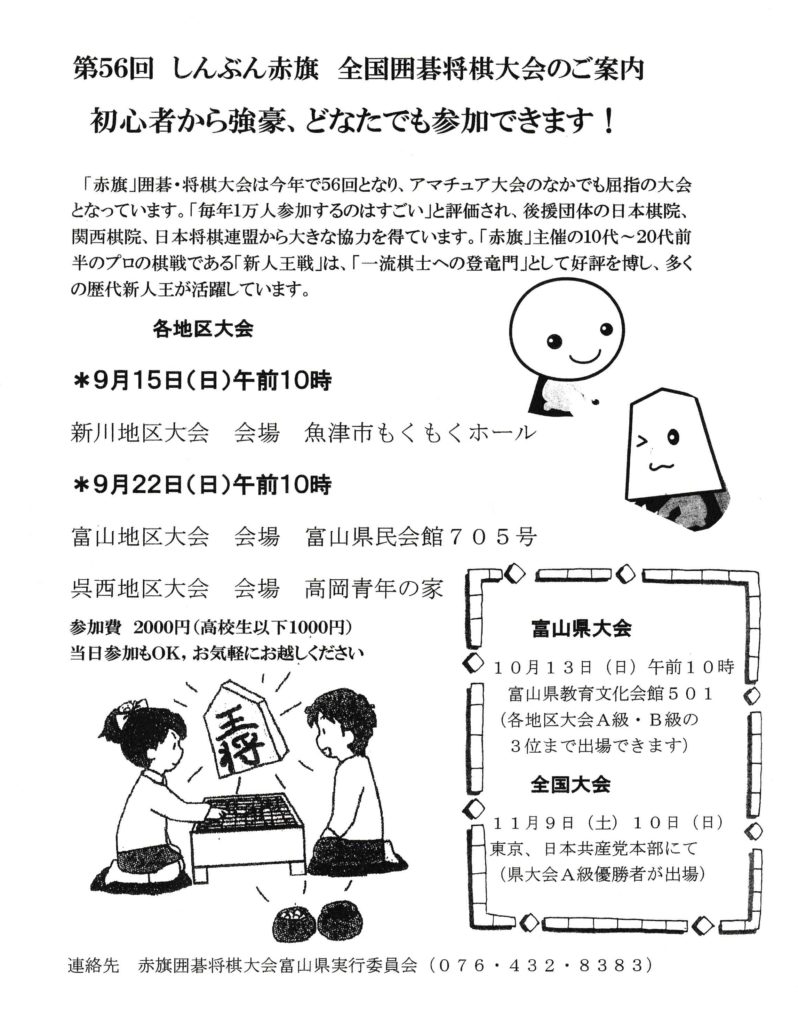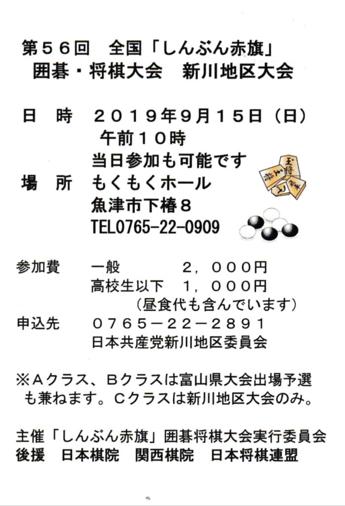 第56回全国「しんぶん赤旗」囲碁・将棋大会 新川地区(2019.9.15)富山地区(9.22)呉西地区(9.22) 富山県大会(2019.10.13) 全国大会(2019.11.9-10)