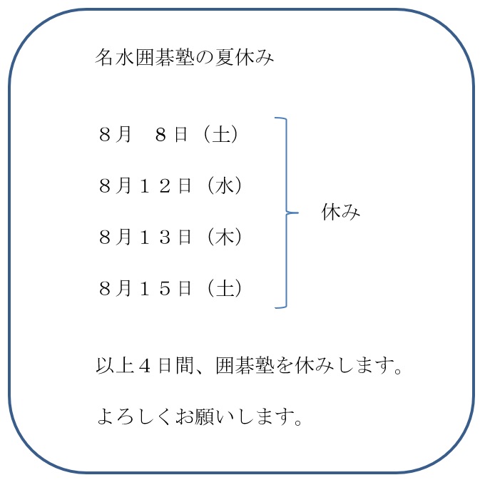 名水囲碁塾お休みのお知らせ(9月第4週)