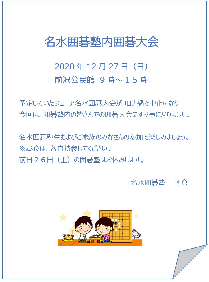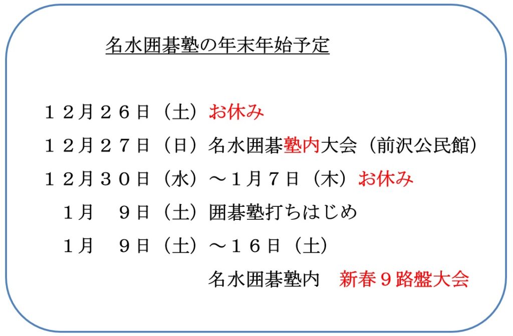 名水囲碁塾 囲碁塾内大会と年末年始お休みのお知らせ