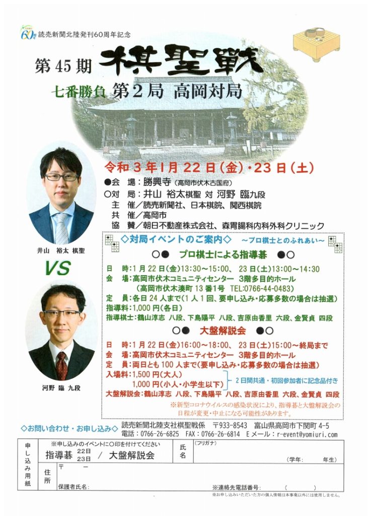 第45期 棋聖戦 七番勝負 第2局 高岡対局