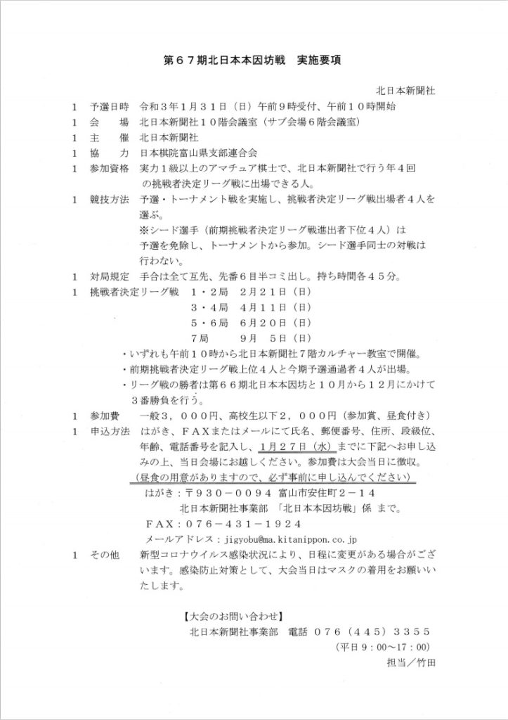 第66期北日本本因坊戦予選(2021.1.31)北日本新聞社