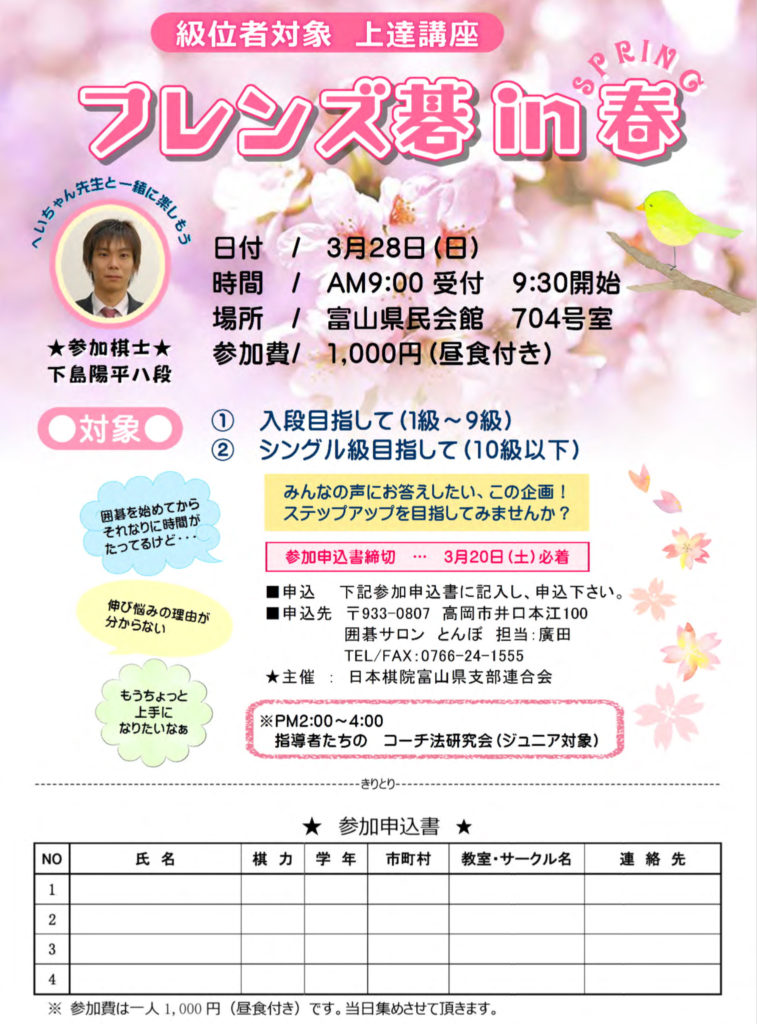 フレンズ碁 in 春 (級位者対象 上達講座)2021.3.28(日)