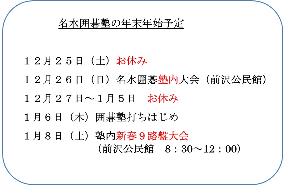 名水囲碁塾の年末年始予定
