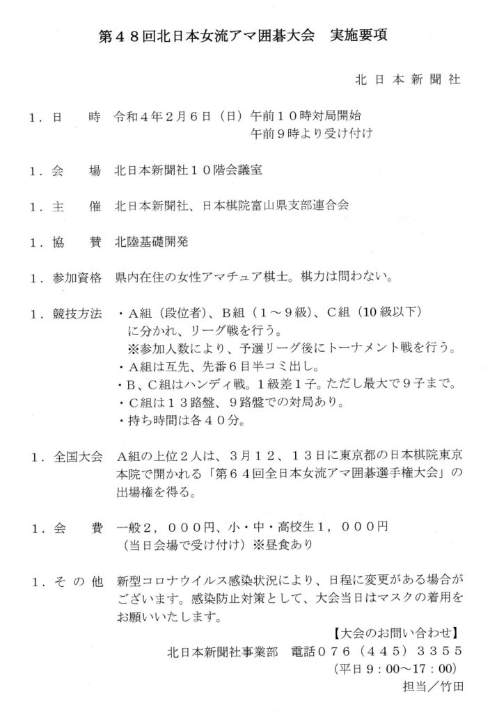 第48回北日本女流アマ囲碁大会(2022.2.6)北日本新聞社