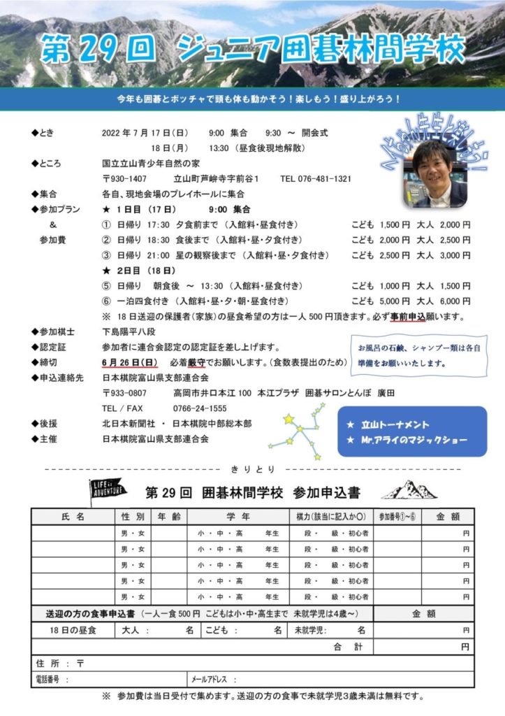 第29回ジュニア囲碁囲碁林間学校(2022.7.17-18)
