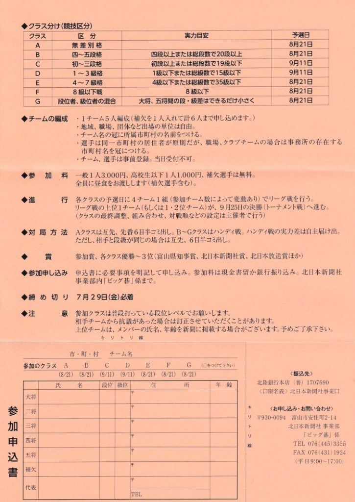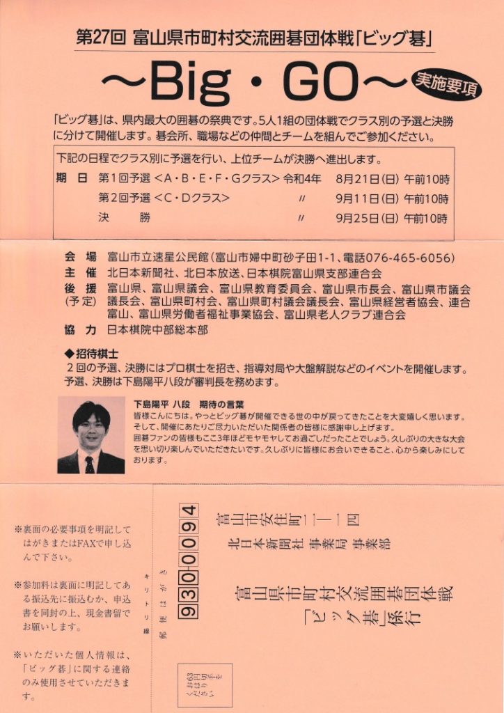 第27回富山県市町村交流囲碁団体戦「ビッグ碁」