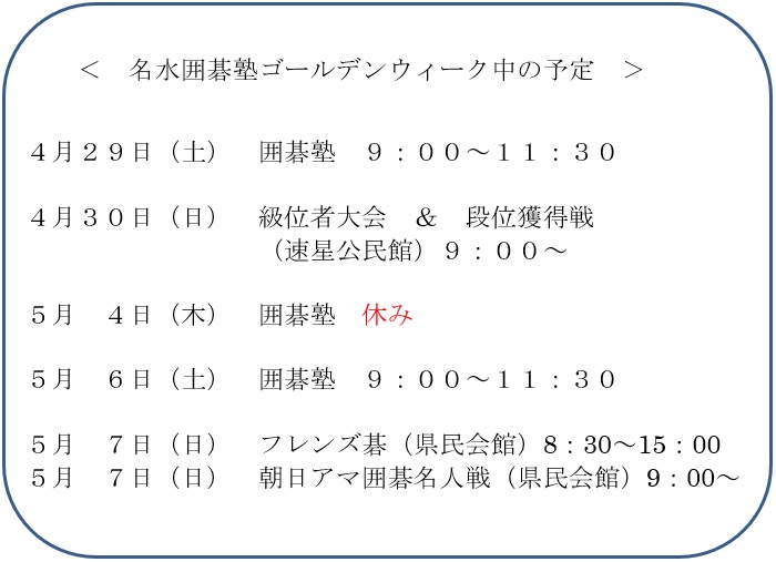 名水囲碁塾ゴールデンウイーク中の予定