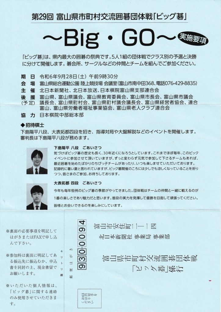 第29回富山県市町村交流囲碁団体戦「ビッグ碁」2024.9.28