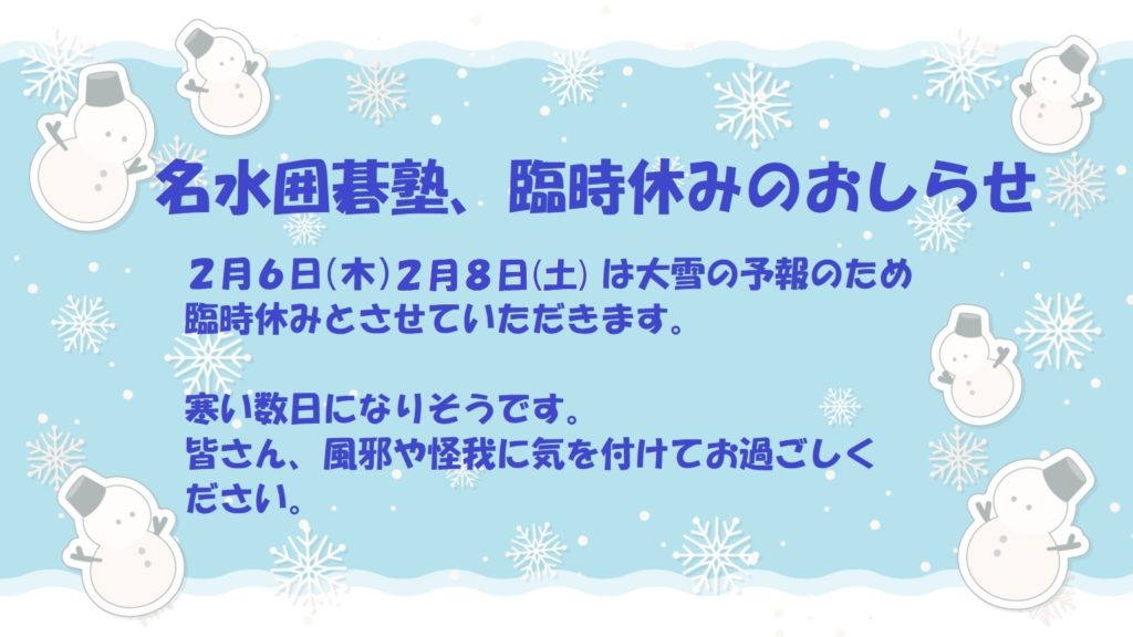 3月1日(日)黒部市囲碁大会中止のお知らせとお詫び