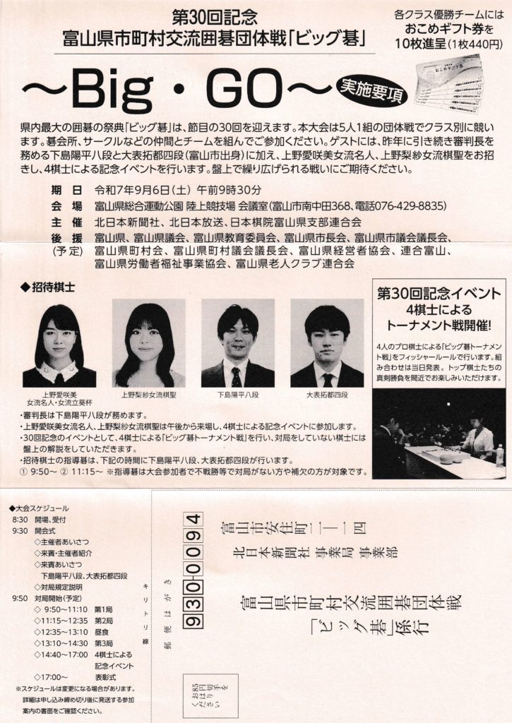 第30回記念 富山県市町村交流囲碁団体戦(ビッグ碁)2025.9.6(土)