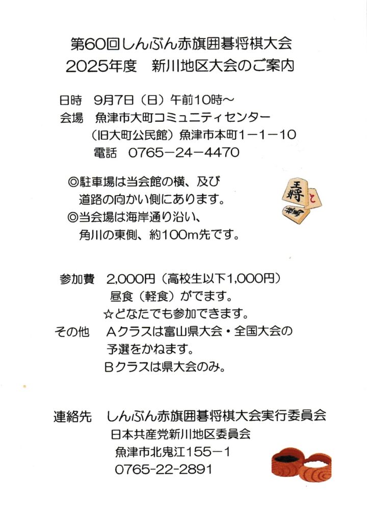 第60回しんぶん赤旗囲碁将棋大会2025新川地区大会