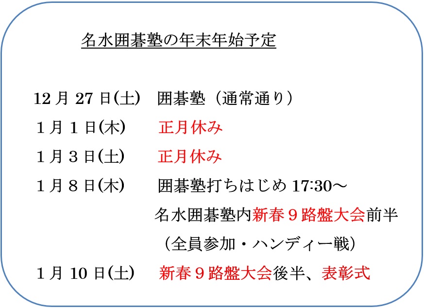 名水囲碁塾の年末年始スケジュール