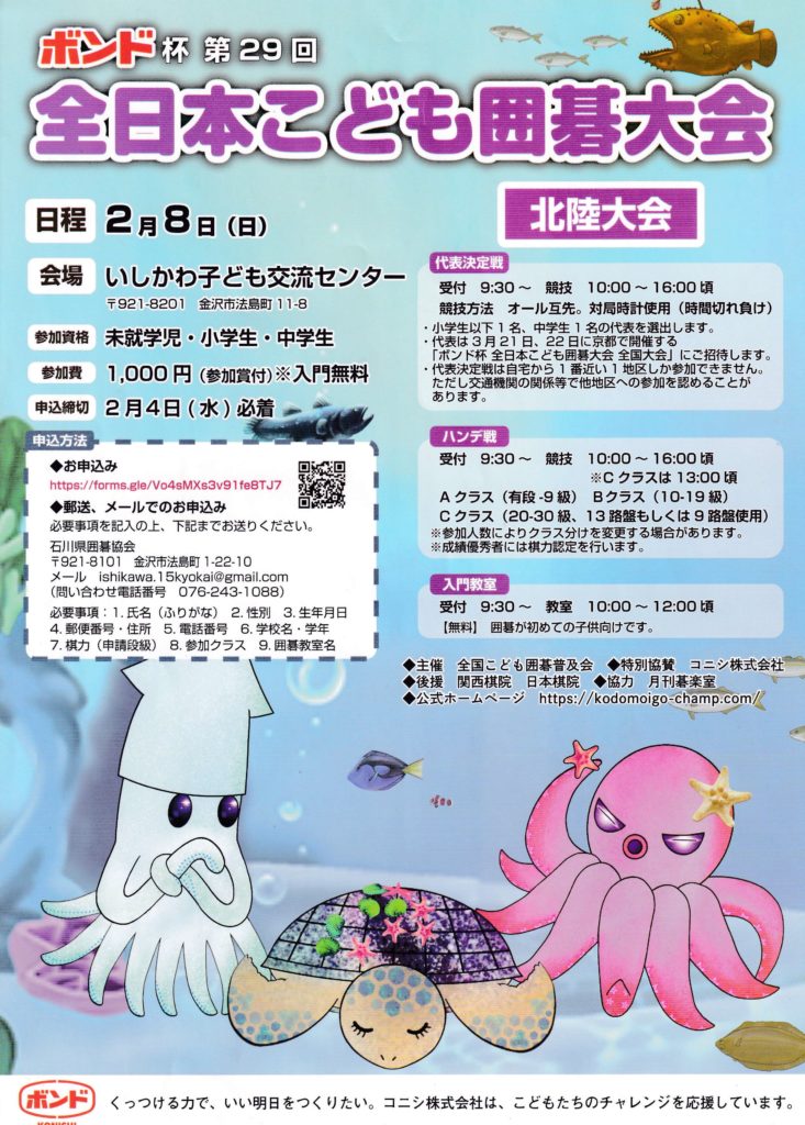 ボンド杯 第29回・全日本こども囲碁大会(北陸大会)2026.2.8